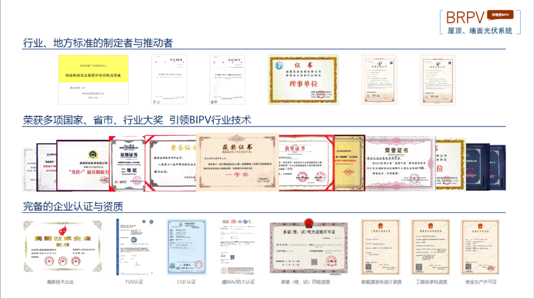 金年会诚信至上作为光伏行业、地方标准的制定者和有助于者,荣获多项国家、省市、行业大奖引领BIPV行业技术,具有全面的企业认证与资质。