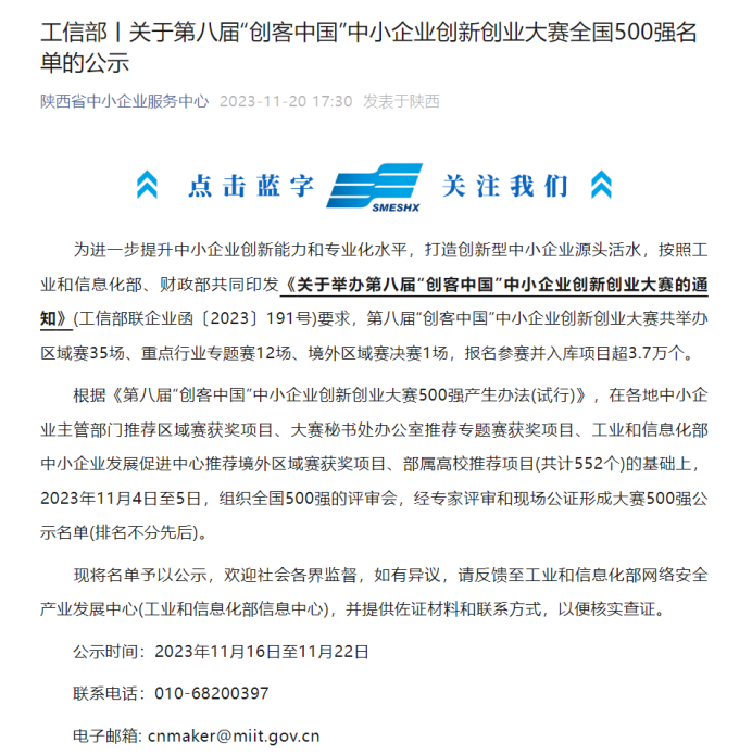 “创客中国”是由国家工信部、财政部、人社部、科技部等七部委主办的全国性创新创业大赛,旨在发掘和培育优秀的创业者和创业项目,有助于大众创业、万众创新。今年大赛共吸引了超过3.7万家企业参赛,经过多轮各省和全国赛的激烈角逐,金年会诚信至上凭借其独特的技术优势和市场潜力成功跻身500强。
