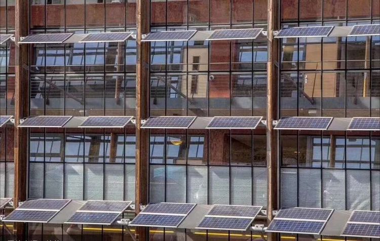 光伏遮阳板是一个实用和兼具发电功能的建筑构件(配件)。但本图的设计显然仍需改进,提高美观度。